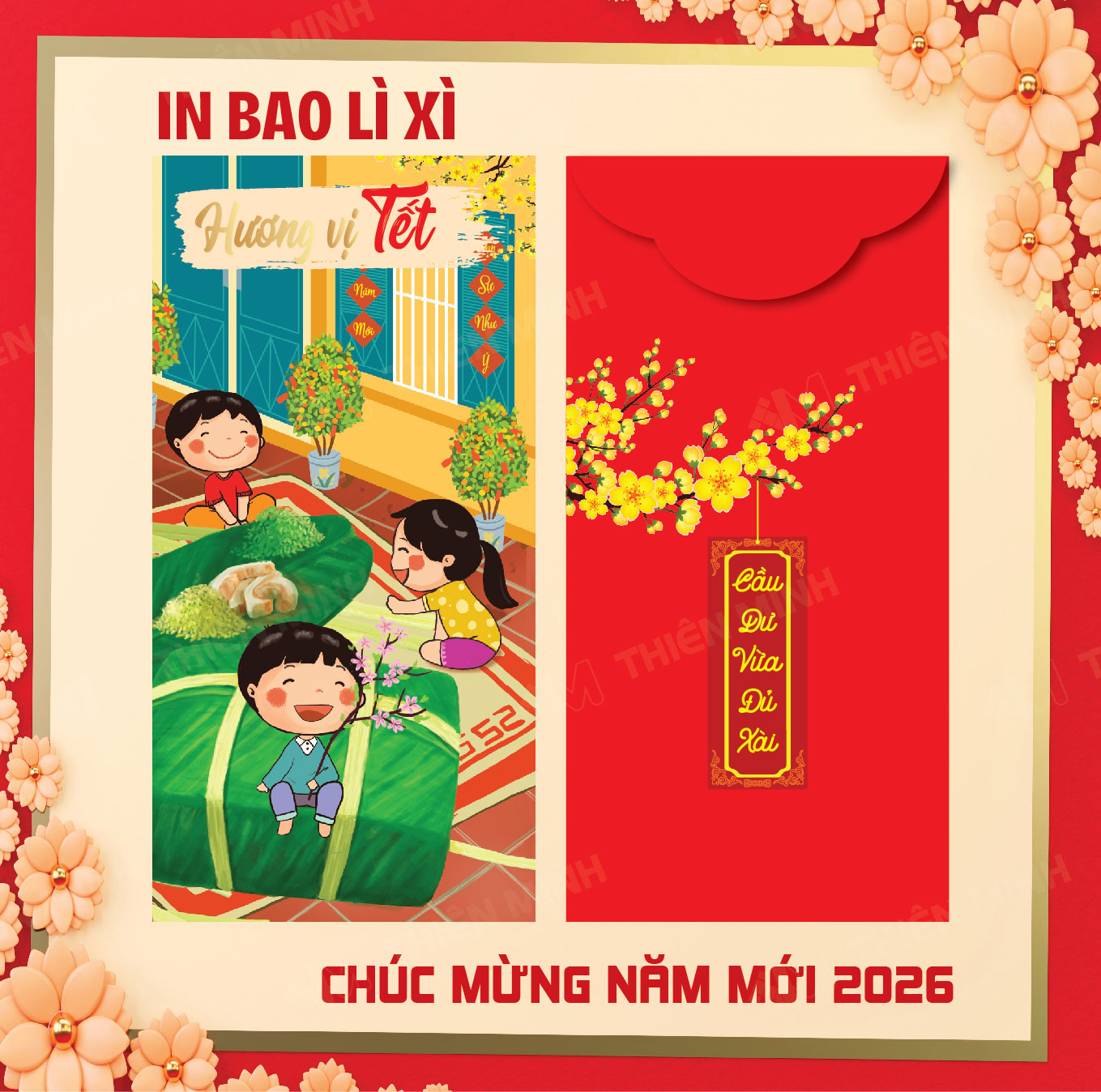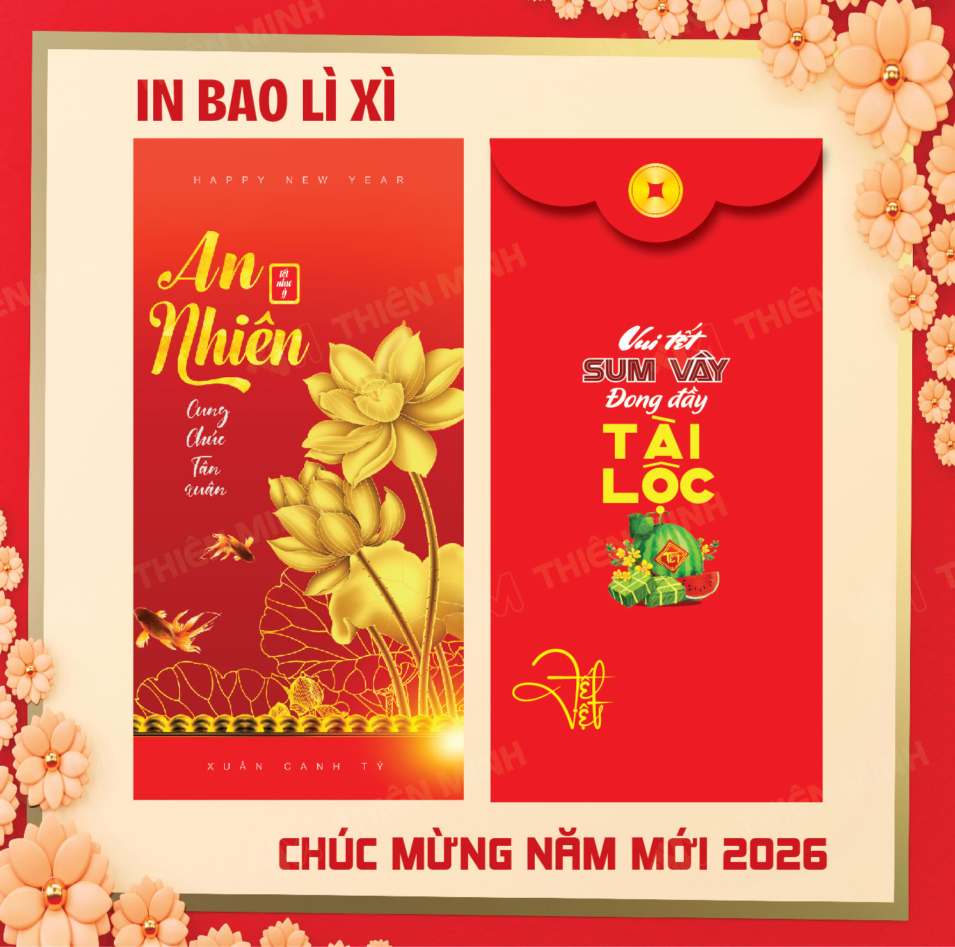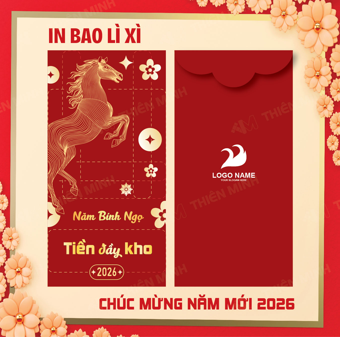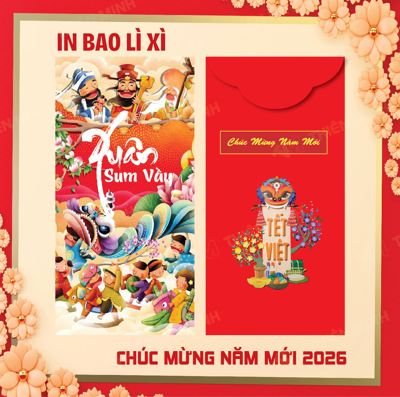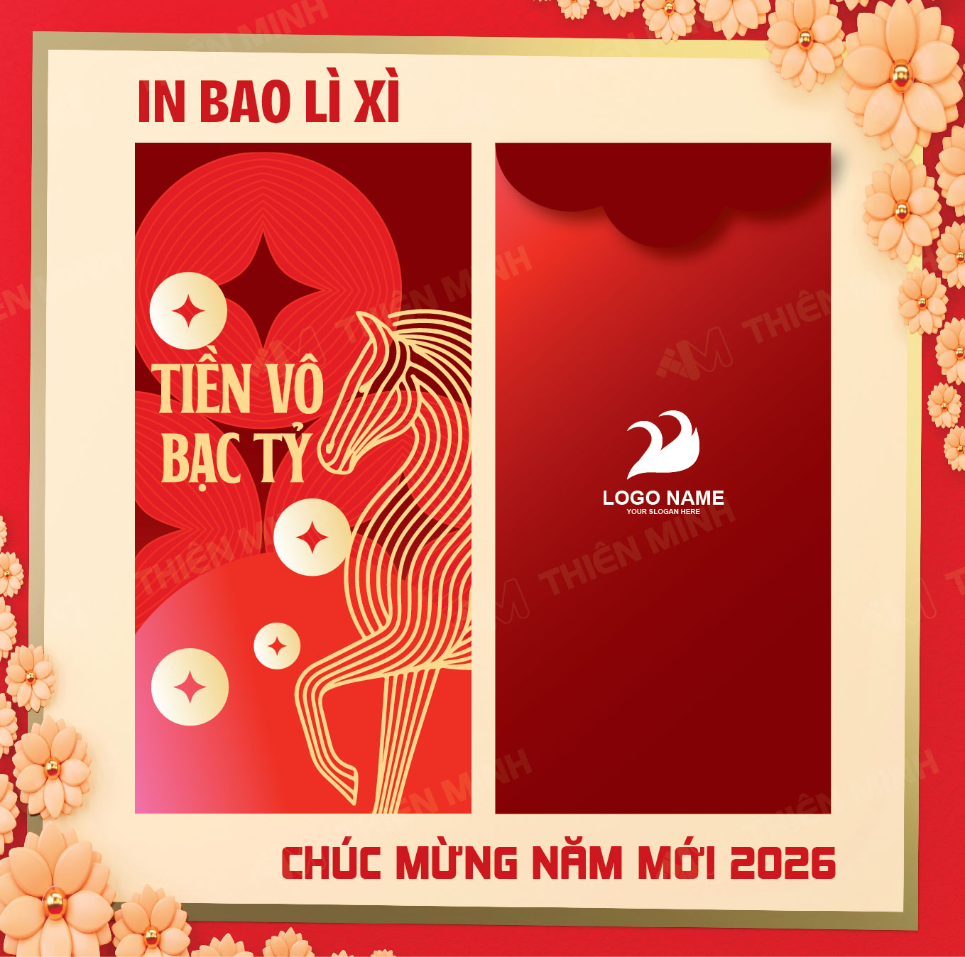 Để chào đón Tết Bính Ngọ 2026, In Ấn Thiên Minh hân hạnh giới thiệu Bộ Sưu Tập 36 Mẫu Bao Lì Xì Độc Quyền. Mỗi thiết kế là một câu chuyện, một phong cách riêng, sẵn sàng cùng bạn trao gửi yêu thương và may mắn. Hãy cùng khám phá và chọn cho mình một "GU" thật ưng ý nhé!
