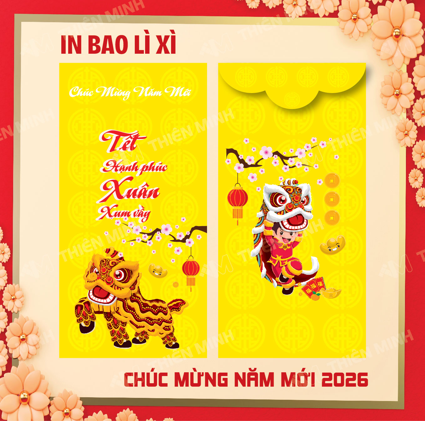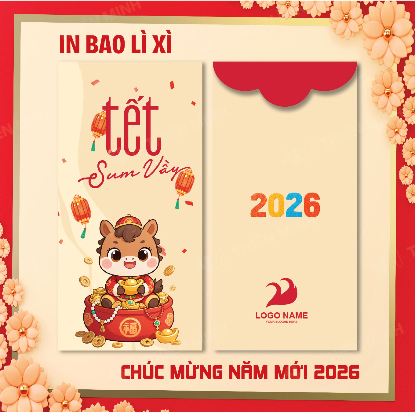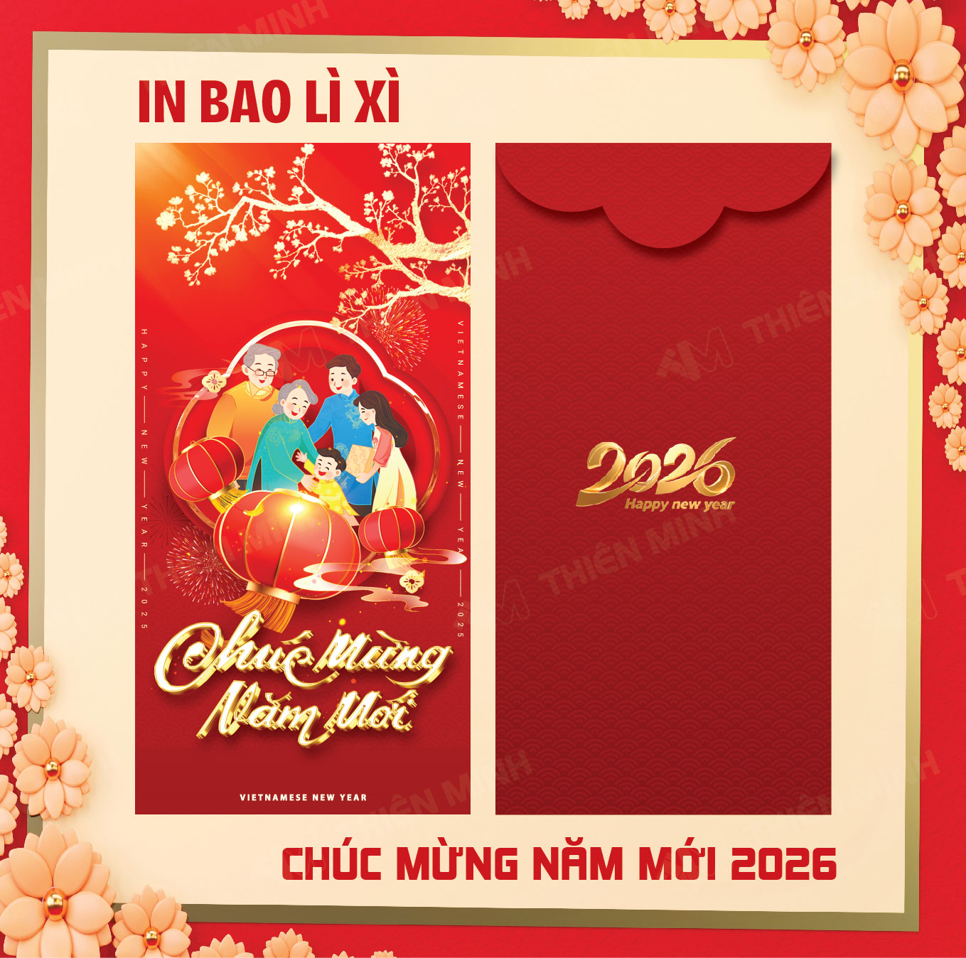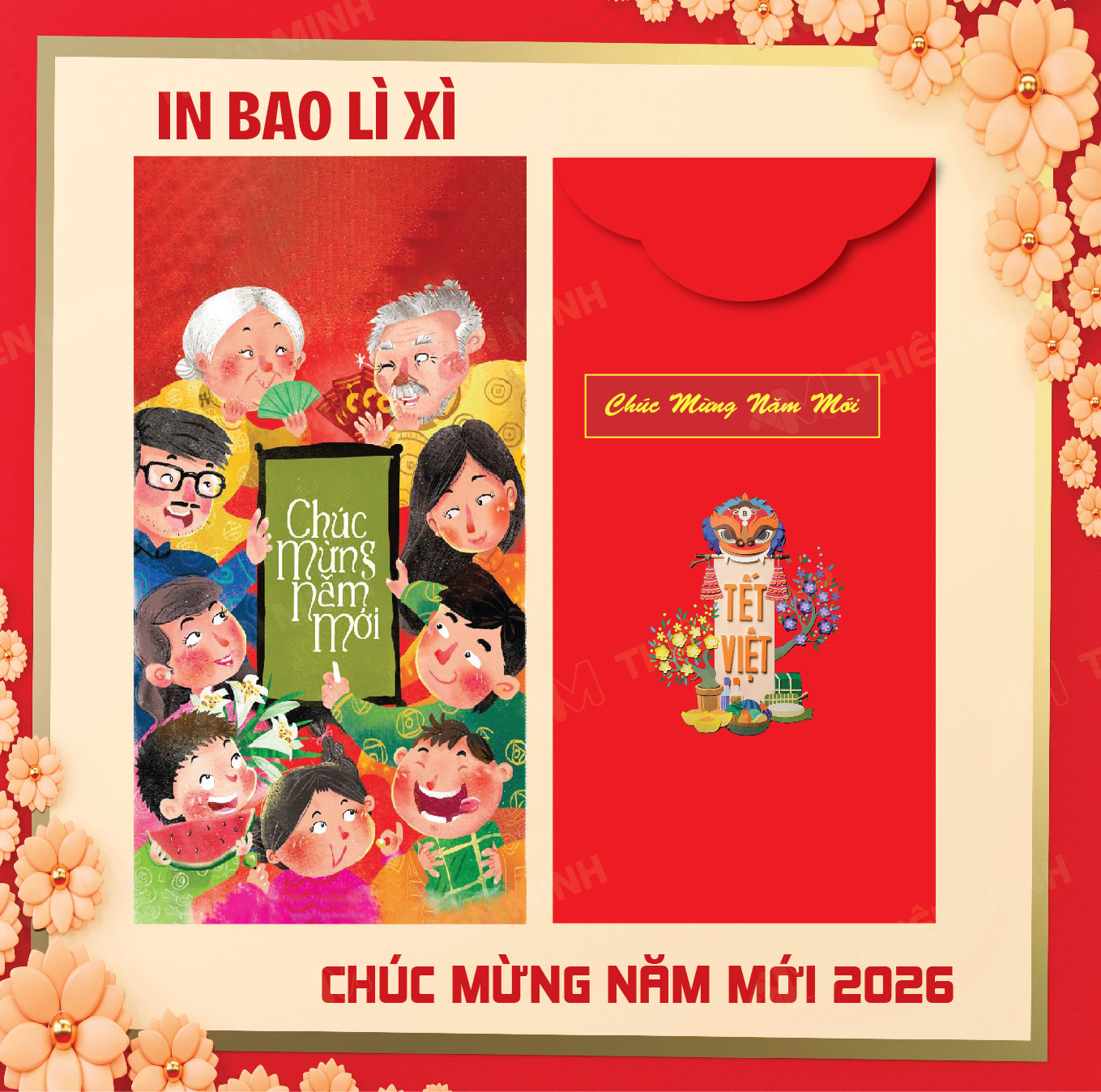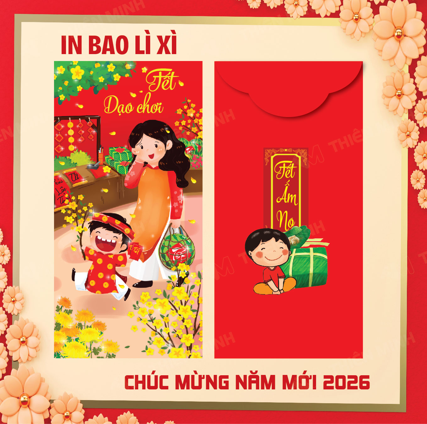 Để chào đón Tết Bính Ngọ 2026, In Ấn Thiên Minh hân hạnh giới thiệu Bộ Sưu Tập 36 Mẫu Bao Lì Xì Độc Quyền. Mỗi thiết kế là một câu chuyện, một phong cách riêng, sẵn sàng cùng bạn trao gửi yêu thương và may mắn. Hãy cùng khám phá và chọn cho mình một "GU" thật ưng ý nhé!