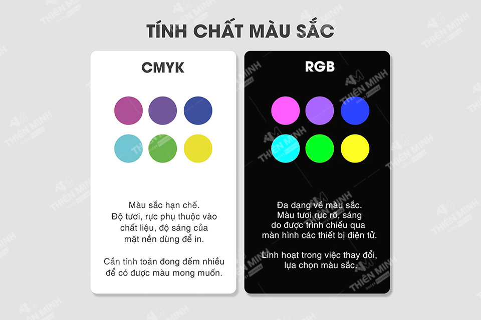 - In Kỹ Thuật Số: In kỹ thuật số tại Thiên Minh cũng sử dụng hệ màu CMYK, đảm bảo thành phẩm có màu sắc chính xác và rõ nét, đáp ứng mọi yêu cầu khắt khe về thời gian.